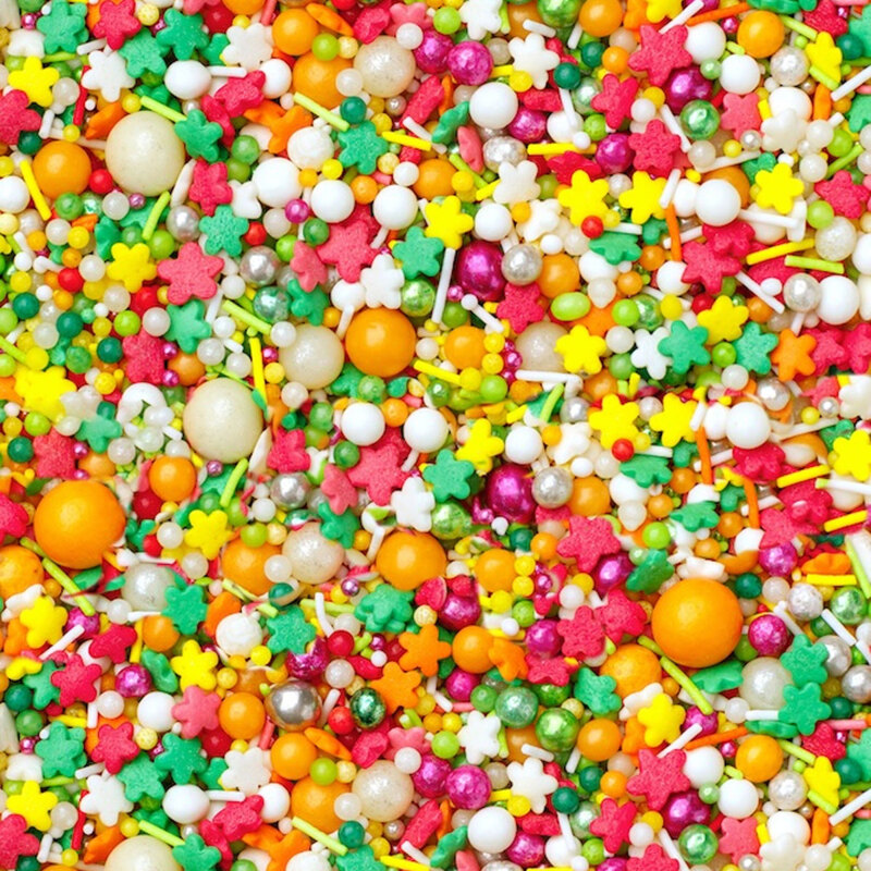- Микс от декоративни форми: снежинки, бастунчета, джинджифилови човечета, перли и пръчици.