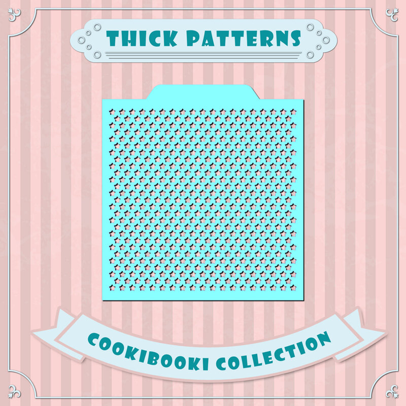 - Трансфер на текстура с въздушна четка – шаблонът може да се използва като стенсил за прецизно нанасяне на цвят и текстура върху бисквитки, фондан и торти