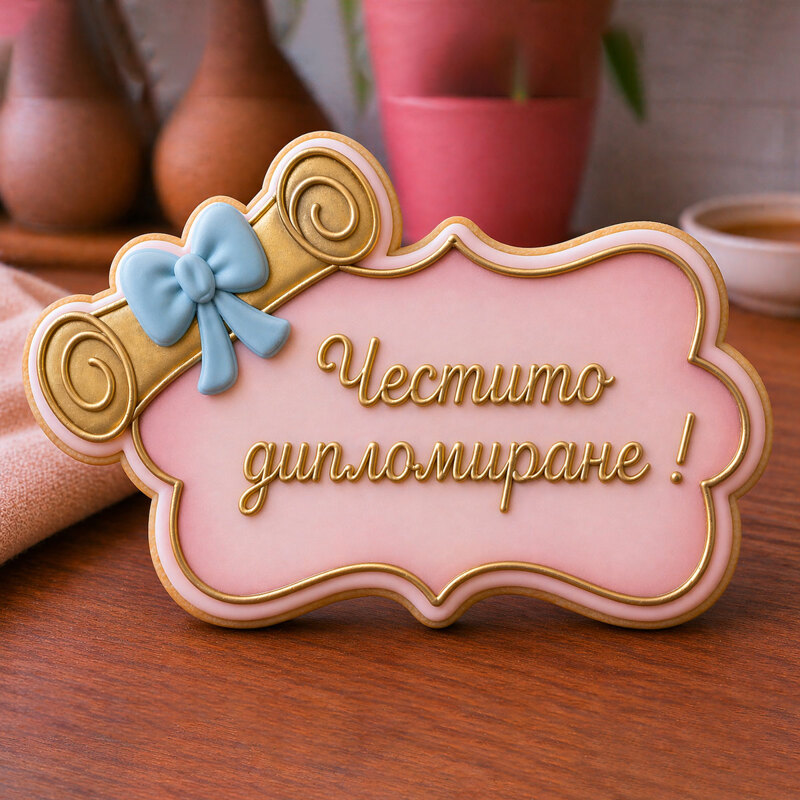 - Дизайн с академична шапка, пискюл и декоративна табелка
