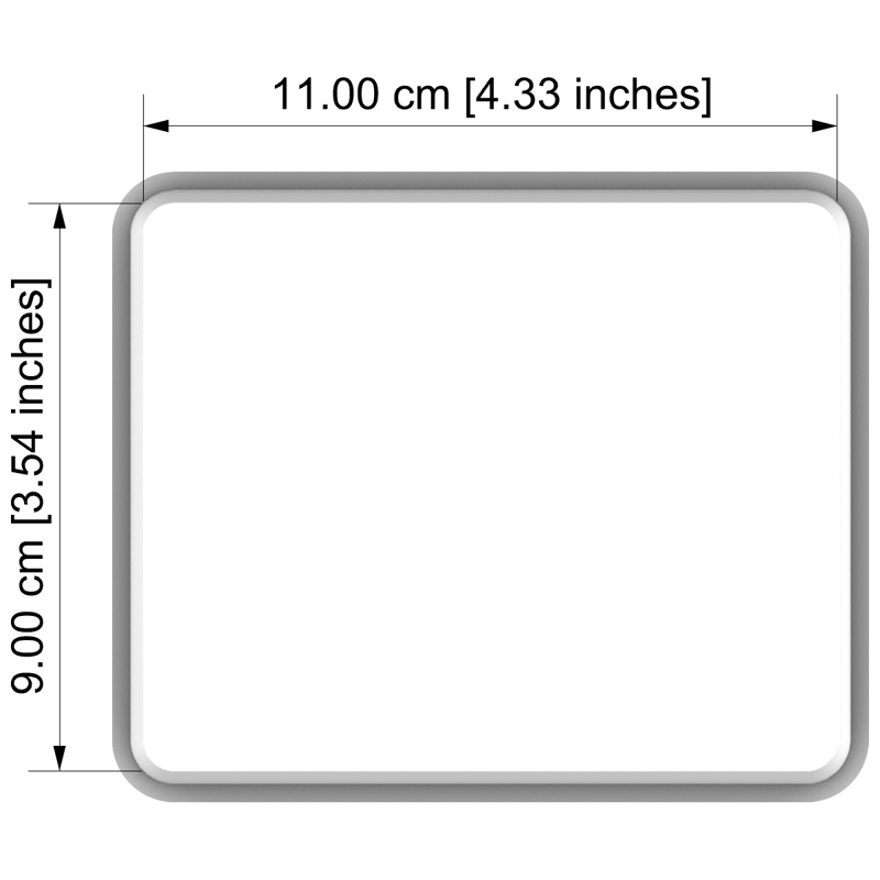 - Форма: правоъгълник със заоблени ъгли