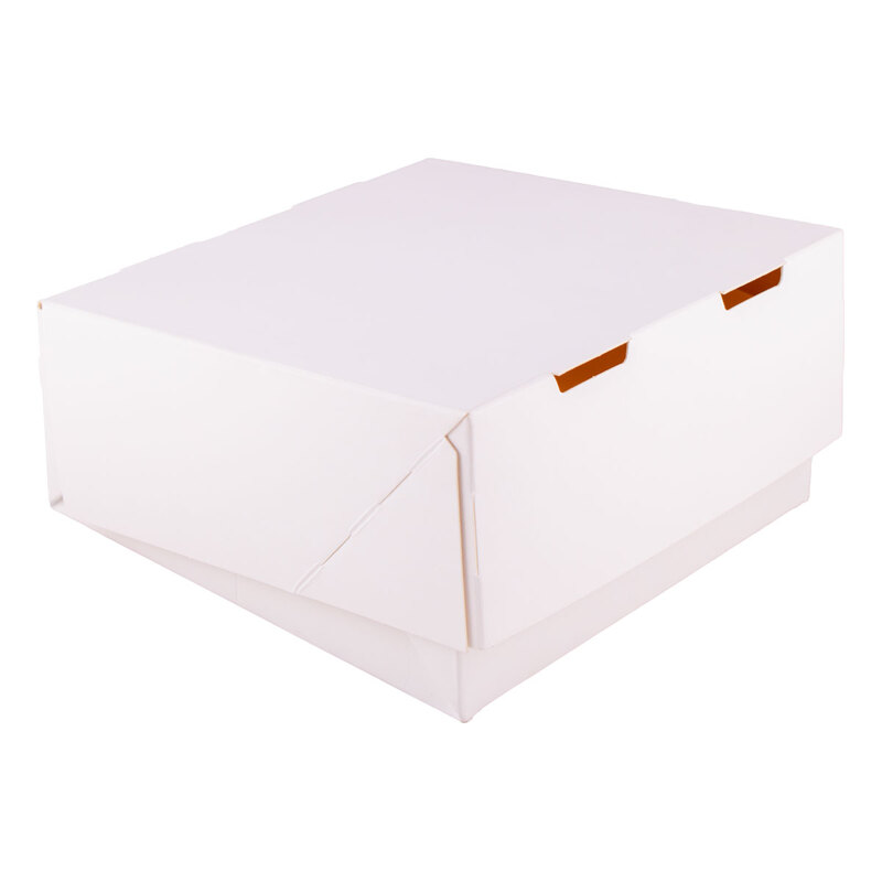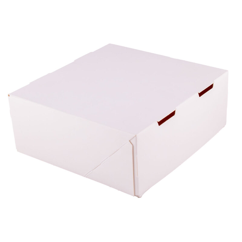 Картонена бяла кутия за дребни сладки. Размери: 13 x 13 x 5.5 см.