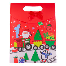 - Кутия с Дядо Коледа във влакче, обикалящо сред елхи и подаръци