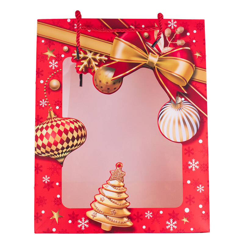 - Коледна подаръчна торбичка с прозрачен прозорец