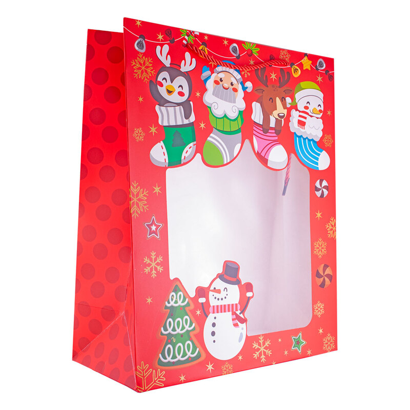 - Коледна подаръчна торбичка с прозрачен прозорец