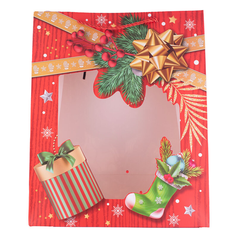 - Коледна подаръчна торбичка с прозрачен прозорец
