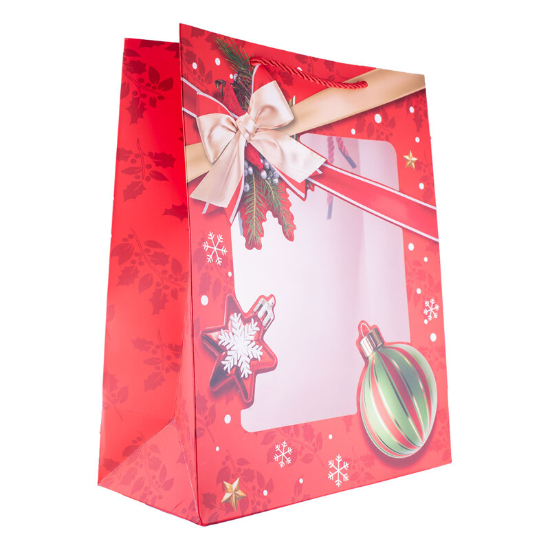- Коледна подаръчна торбичка с прозрачен прозорец