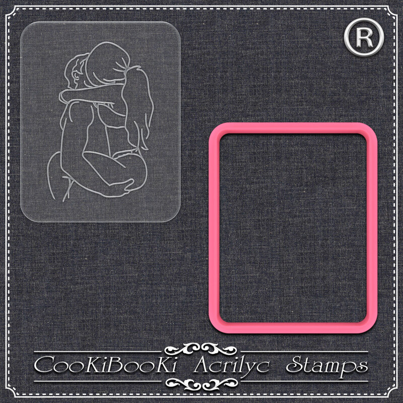 Комплектът включва прозрачен акрилен печат с фин линеен релеф и съответстващ правоъгълен резец със заоблени ъгли. Създаден е специално за релефно отпечатване на романтичен мотив „прегръдка“ върху бисквити и захарни декорации, като осигурява чисти линии, равномерен натиск и професионален резултат.