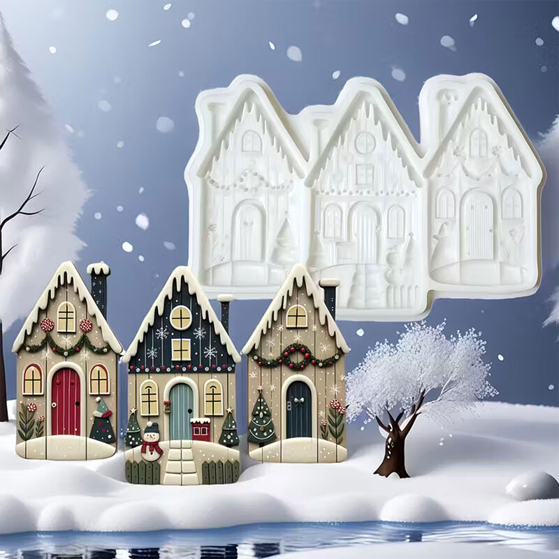 - 3 свързани зимни къщички в един молд – създават цялостен малък „коледен квартал“.