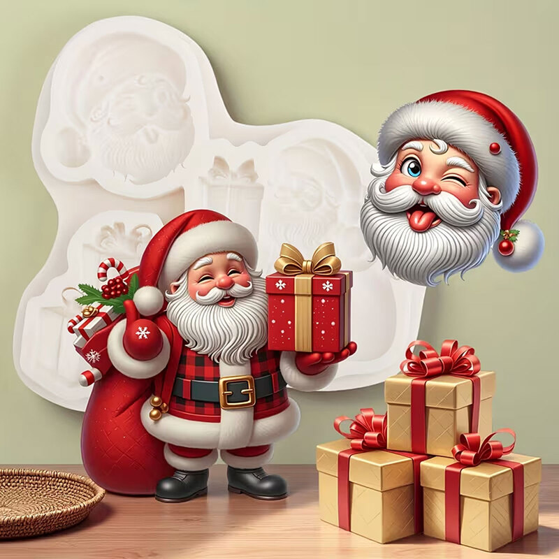 - Три отделни форми: глава на Дядо Коледа, Дядо Коледа с подарък в ръка и група подаръчни кутии.